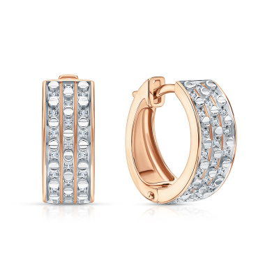 Серьги с 44 бриллиантами природными, 0.15 карат, огранка круг 17 граней, цвет 2, чистота 2, тип огранки А; Розовое золото 585 пробы.