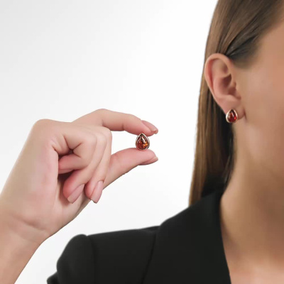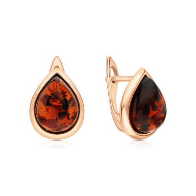 Серьги с 2 янтарями коричневыми природными, 1.6 карат; Розовое золото 585 пробы.