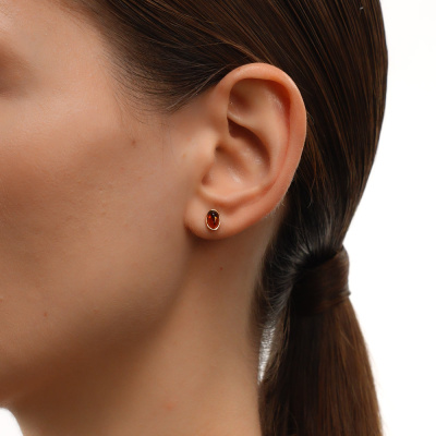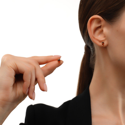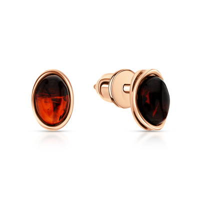 Серьги с 2 янтарями коричневыми природными, 0.4 карат; Розовое золото 585 пробы.