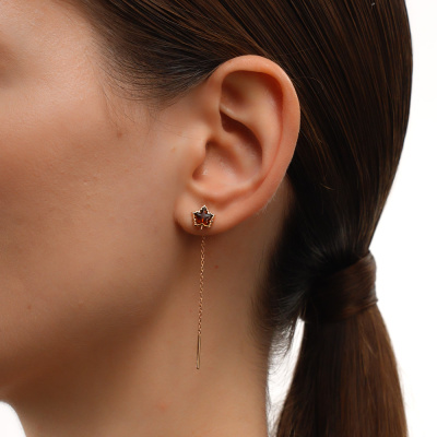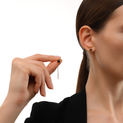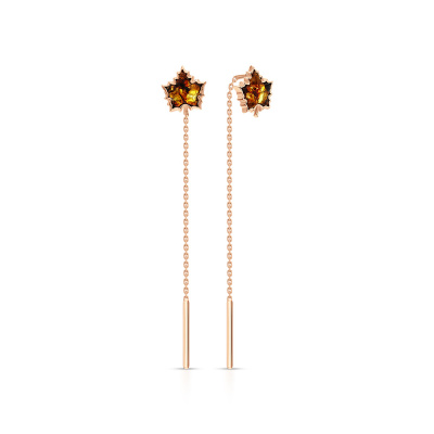 Серьги с 2 янтарями коричневыми природными, 1.9 карат; Розовое золото 585 пробы.