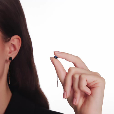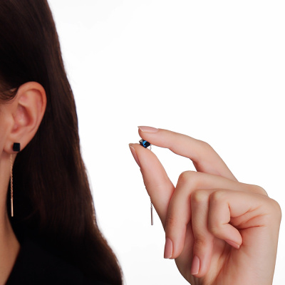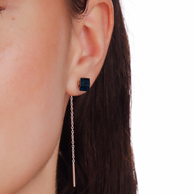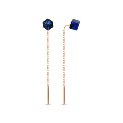 Серьги с 2 янтарями синими, 1.25 карат; Розовое золото 585 пробы.