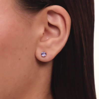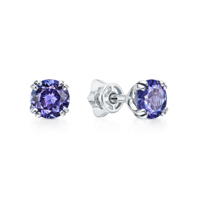Серьги с 2 танзанитами природными, 0.95 карат; Белое золото 585 пробы.