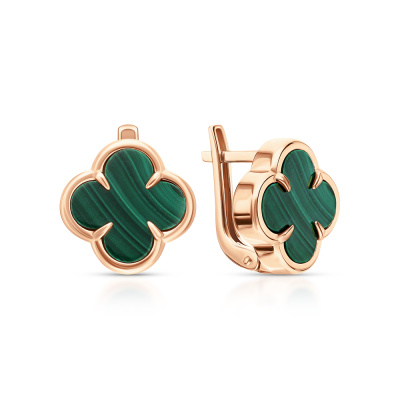 Серьги с 2 малахитами; Розовое золото 585 пробы.
