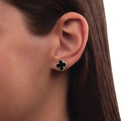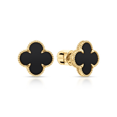 Серьги с 2 ониксами черными природными; Желтое золото 585 пробы.