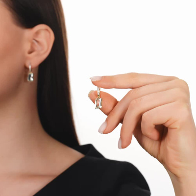 Золотые серьги с празиолитами природными и бриллиантами природными