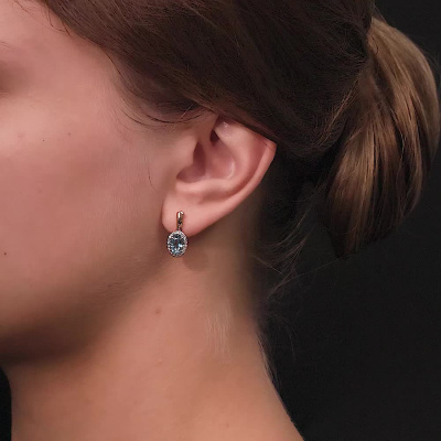 Серьги с 40 бриллиантами природными, 0.16 карат, огранка круг 17 граней, цвет 2, чистота 2, тип огранки А; 2 топазами свисс природными, 1.62 карат; Розовое золото 585 пробы.