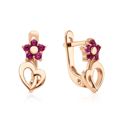 Серьги с 10 рубинами синтетическими, 0.2 карат; Розовое золото 585 пробы.