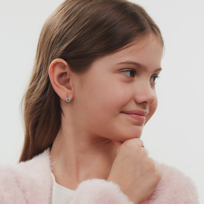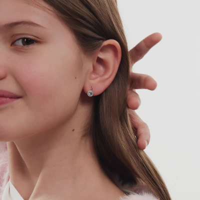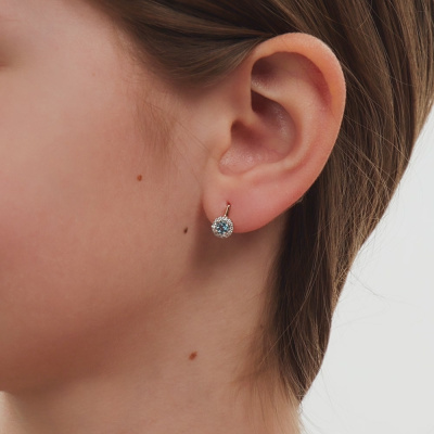 Серьги с 28 бриллиантами природными, 0.11 карат, огранка круг 17 граней, цвет 2, чистота 2, тип огранки А; 2 топазами свисс природными, 0.37 карат; Розовое золото 585 пробы.