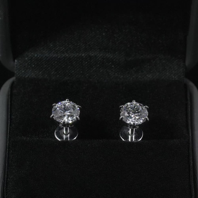 Серьги с 1 бриллиантом природным, 1 карат, огранка круг 57 граней, цвет 5, чистота 4, тип огранки А; 1 бриллиантом природным, 1 карат, огранка круг 57 граней, цвет 5, чистота 5, тип огранки А; Белое золото 585 пробы.