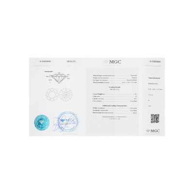 Серьги с 1 бриллиантом природным, 1 карат, огранка круг 57 граней, цвет 4, чистота 5, тип огранки А; 1 бриллиантом природным, 1 карат, огранка круг 57 граней, цвет 5, чистота 5, тип огранки А; Белое золото 585 пробы.