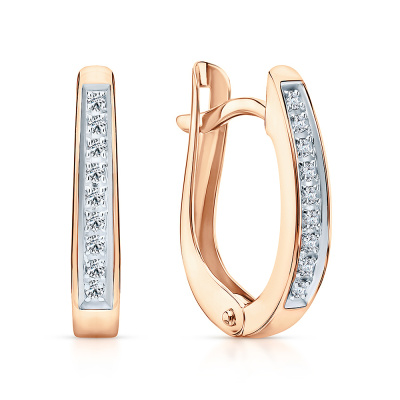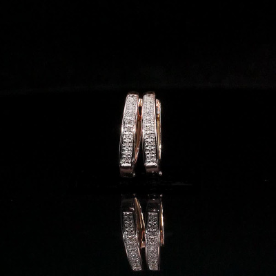 Серьги с 18 бриллиантами природными, 0.06 карат, огранка круг 17 граней, цвет 2, чистота 2, тип огранки А; Розовое золото 585 пробы.