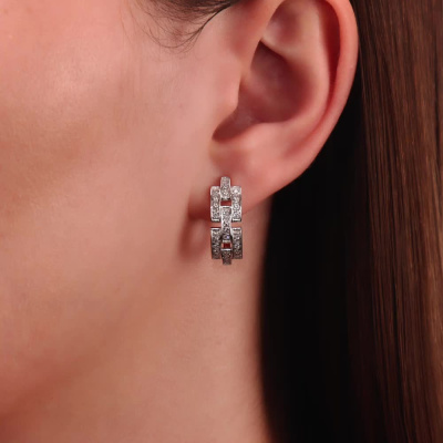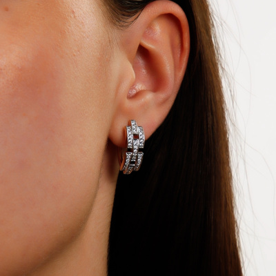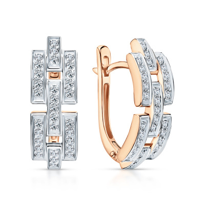 Серьги с 62 бриллиантами природными, 0.46 карат, огранка круг 57 граней, цвет 3, чистота 6, тип огранки А; Розовое золото 585 пробы.