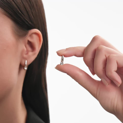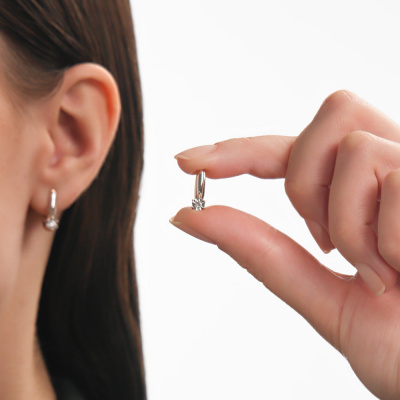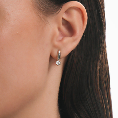 Серьги с 2 бриллиантами природными, 0.07 карат, огранка круг 57 граней, цвет 3, чистота 6, тип огранки А; Розовое и белое золото 585 пробы.