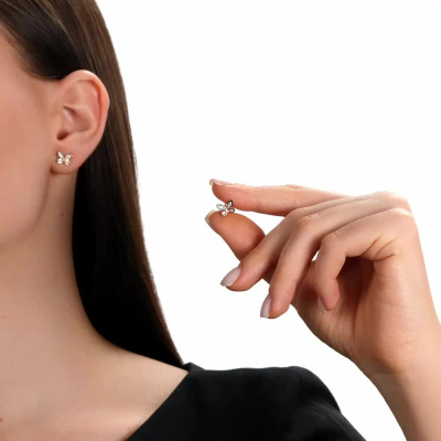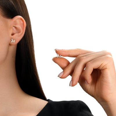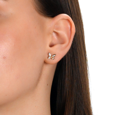 Серьги с 4 бриллиантами природными, 0.02 карат, огранка круг 57 граней, цвет 3, чистота 6, тип огранки А; 8 бриллиантами природными, 0.02 карат, огранка круг 17 граней, цвет 2, чистота 2, тип огранки А; Розовое золото 585 пробы.