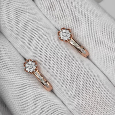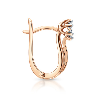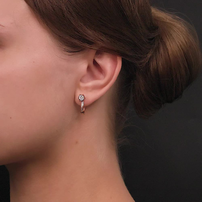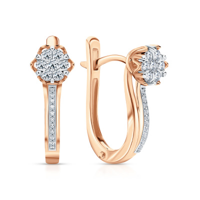 Серьги с 2 бриллиантами природными, 0.04 карат, огранка круг 57 граней, цвет 3, чистота 6, тип огранки А; 12 бриллиантами природными, 0.16 карат, огранка круг 57 граней, цвет 3, чистота 6, тип огранки А; 20 бриллиантами природными, 0.03 карат, огранка круг 17 граней, цвет 2, чистота 2, тип огранки А; Розовое и белое золото 585 пробы.