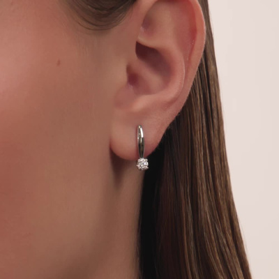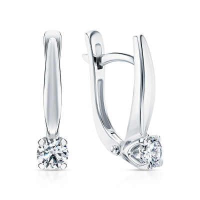 Серьги с 2 бриллиантами природными, 0.39 карат, огранка круг 57 граней, цвет 3, чистота 6, тип огранки А; Белое золото 585 пробы.