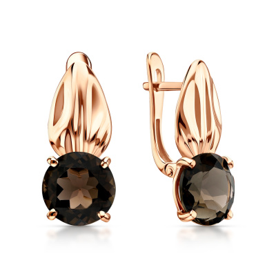 Серьги с 2 кварцами дымчатыми природными, 3.2 карат; Розовое золото 585 пробы.