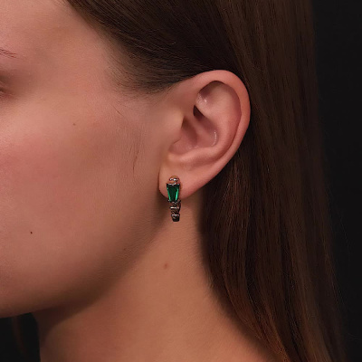 Золотые серьги с наноситаллами изумруд