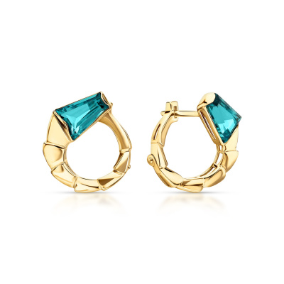 Серьги, вставка: наноситал турмалин параиба, 2.14 карат; Желтое золото 585 пробы.