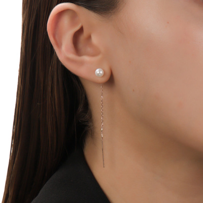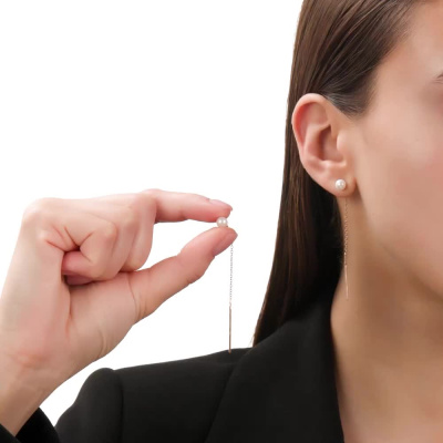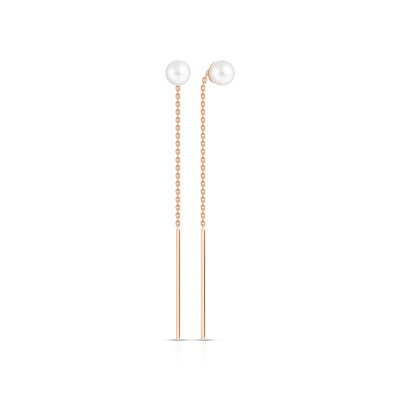 Серьги с 2 жемчугами пресноводными культ.белыми; Розовое золото 585 пробы.