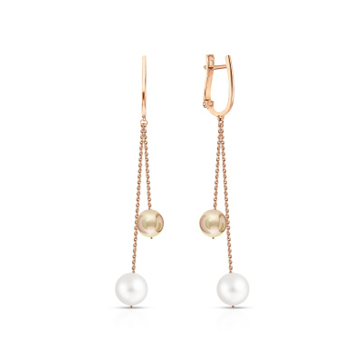 Серьги с 2 жемчугами пресноводными культ.белыми; 2 жемчугами пресноводными культ.розовыми; Розовое золото 585 пробы.