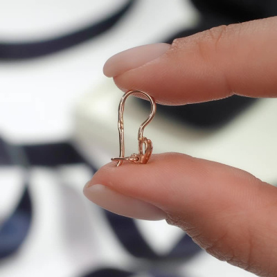 Серьги с 2 бриллиантами природными, 0.02 карат, огранка круг 57 граней, цвет 3, чистота 6; Розовое золото 585 пробы.