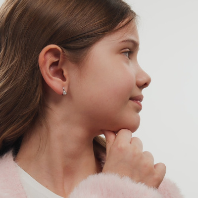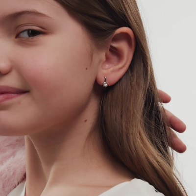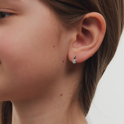 Серьги с 2 бриллиантами природными, 0.04 карат, огранка круг 57 граней, цвет 3, чистота 6; Белое золото 585 пробы.