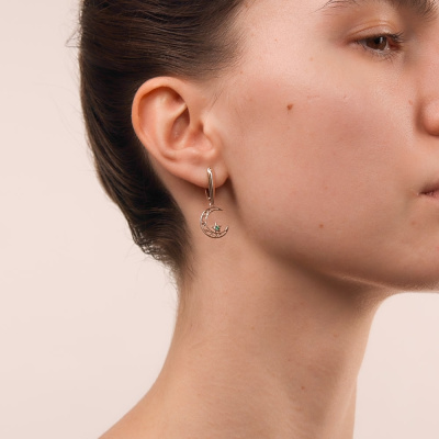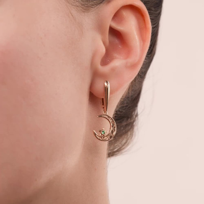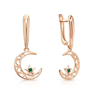 Серьги, вставка: ситалл зеленый; Розовое золото 585 пробы.