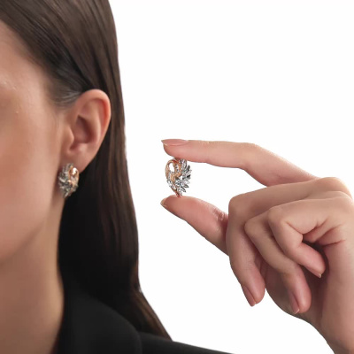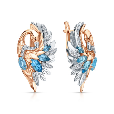 Серьги с 2 топазами свисс природными, 0.51 карат; 4 топазами свисс природными, 0.63 карат; 2 топазами свисс природными, 0.21 карат; 22 топазами бесцветными природными, 0.22 карат; 16 топазами бесцветными природными, 0.08 карат; Розовое и белое золото 585 пробы.