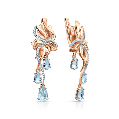 Серьги с 2 топазами скай природными, 0.97 карат; 4 топазами скай природными, 0.92 карат; Розовое золото 585 пробы.