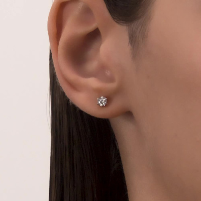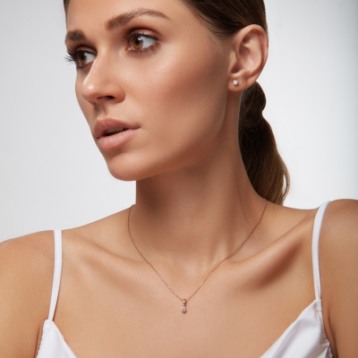 Серьги с 2 бриллиантами выращенными, 0.49 карат, огранка круг 57 граней, цвет 4, чистота 6, тип огранки А; Розовое золото 585 пробы.