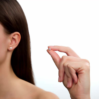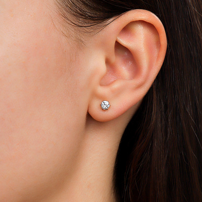 Серьги с 2 бриллиантами выращенными, 0.44 карат, огранка круг 57 граней, цвет 4, чистота 6, тип огранки А; Розовое золото 585 пробы.