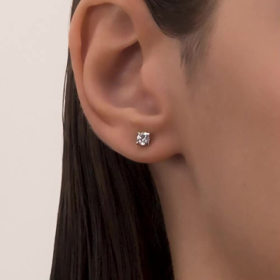 Серьги с 2 бриллиантами выращенными, 0.62 карат, огранка круг 57 граней, цвет 4, чистота 6, тип огранки А; Белое золото 585 пробы.