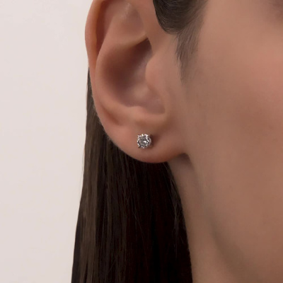 Серьги с 2 бриллиантами выращенными, 0.63 карат, огранка круг 57 граней, цвет 3, чистота 6, тип огранки А; Белое золото 585 пробы.