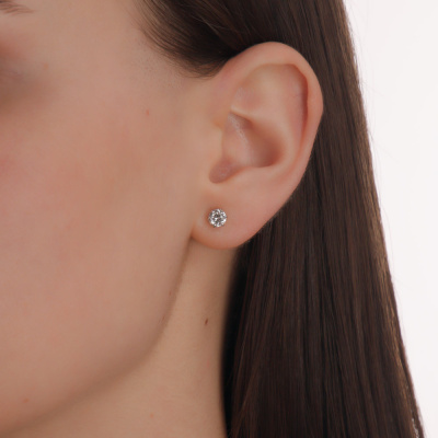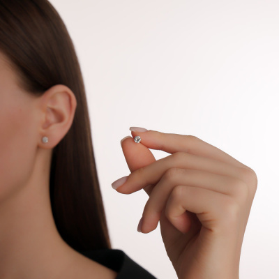 Серьги с 2 бриллиантами выращенными, 0.81 карат, огранка круг 57 граней, цвет 4, чистота 6, тип огранки А; Белое золото 585 пробы.