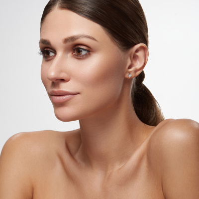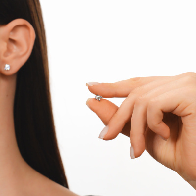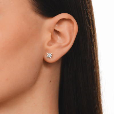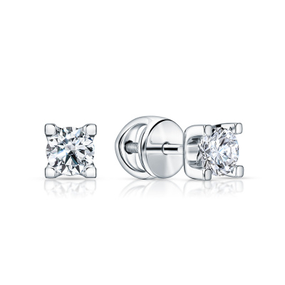 Серьги с 2 бриллиантами выращенными, 0.65 карат, огранка круг 57 граней, цвет 4, чистота 6, тип огранки А; Белое золото 585 пробы.