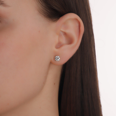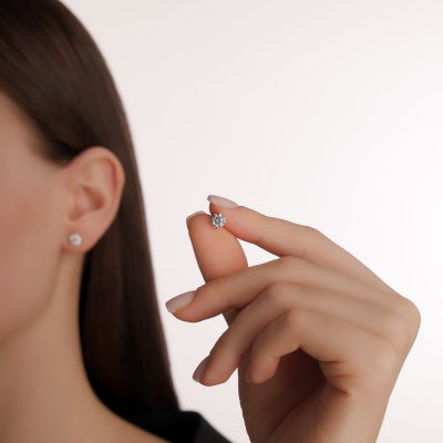 Серьги с 2 бриллиантами выращенными, 1.48 карат, огранка круг 57 граней, цвет 4, чистота 6, тип огранки А; Белое золото 585 пробы.