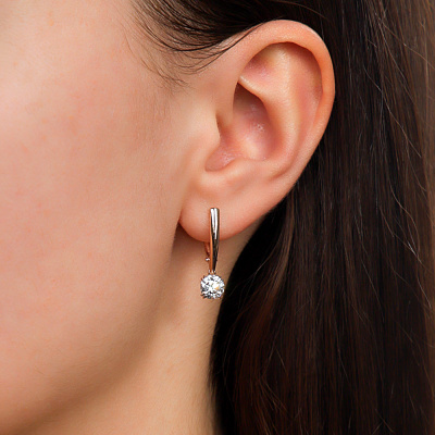 Серьги с 2 бриллиантами выращенными, 1.48 карат, огранка круг 57 граней, цвет 4, чистота 6, тип огранки А; Розовое золото 585 пробы.