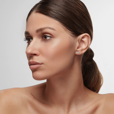 Серьги с 2 бриллиантами выращенными, 1.48 карат, огранка круг 57 граней, цвет 4, чистота 6, тип огранки А; Белое золото 585 пробы.