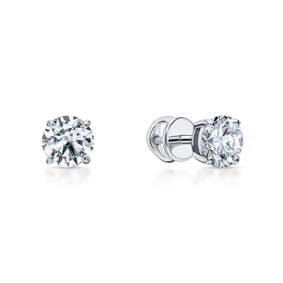 Серьги с 1 бриллиантом выращенным, 1.02 карат, огранка круг 57 граней, цвет 1, чистота 3, тип огранки А; 1 бриллиантом выращенным, 1 карат, огранка круг 57 граней, цвет 1, чистота 4, тип огранки А; Белое золото 585 пробы.