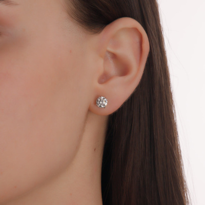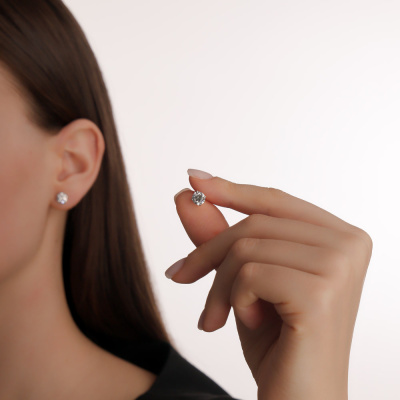 Серьги с 1 бриллиантом выращенным, 1.02 карат, огранка круг 57 граней, цвет 2, чистота 5, тип огранки А; 1 бриллиантом выращенным, 1.01 карат, огранка круг 57 граней, цвет 2, чистота 4, тип огранки А; Белое золото 585 пробы.