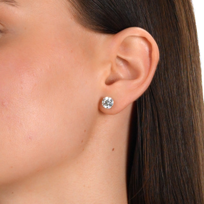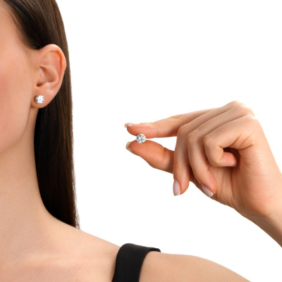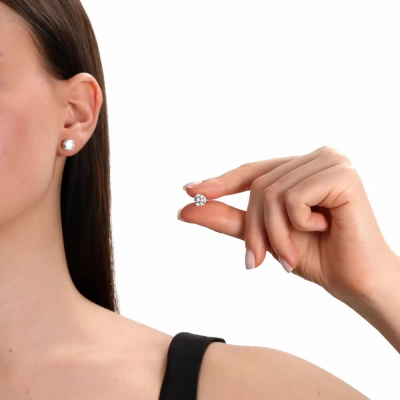 Серьги с 2 бриллиантами выращенными, 3.06 карат, огранка круг 57 граней, цвет 4, чистота 5, тип огранки А; Белое золото 585 пробы.