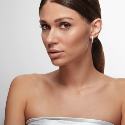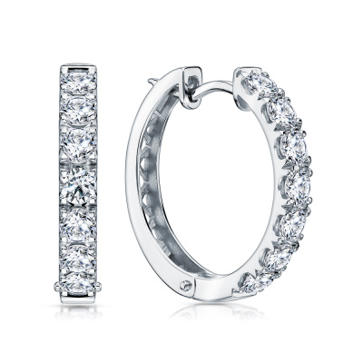 Серьги с 14 бриллиантами выращенными, 1.45 карат, огранка круг 57 граней, цвет 3, чистота 5, тип огранки А; Белое золото 585 пробы.