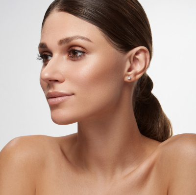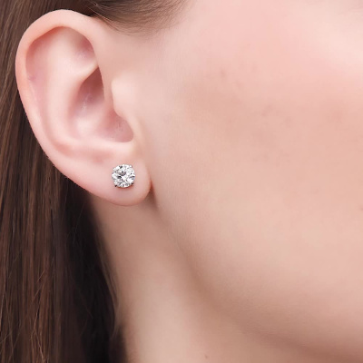 Серьги с 2 бриллиантами выращенными, 1.68 карат, огранка круг 57 граней, цвет 4, чистота 6, тип огранки А; Белое золото 585 пробы.