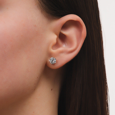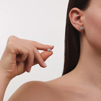 Серьги с 2 бриллиантами выращенными, 2.03 карат, огранка круг 57 граней, цвет 4, чистота 5, тип огранки А; Белое золото 585 пробы.
