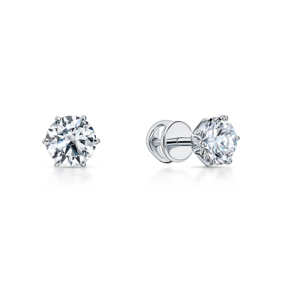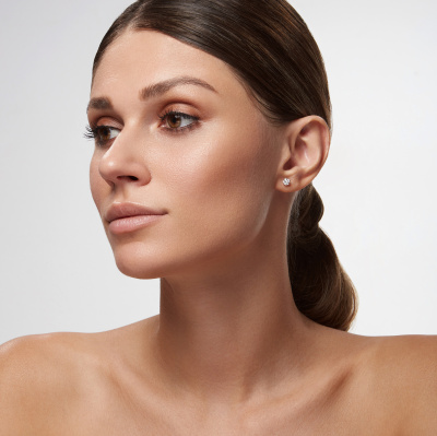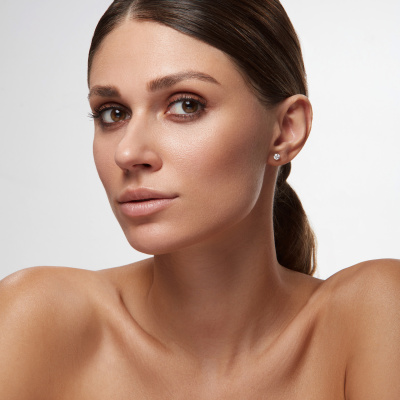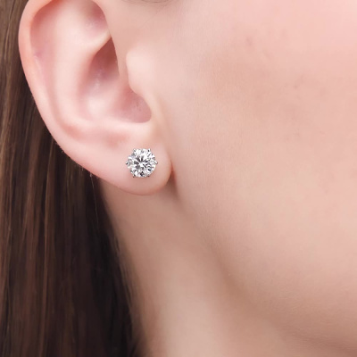 Серьги с 2 бриллиантами выращенными, 2.02 карат, огранка круг 57 граней, цвет 4, чистота 5, тип огранки А; Белое золото 585 пробы.