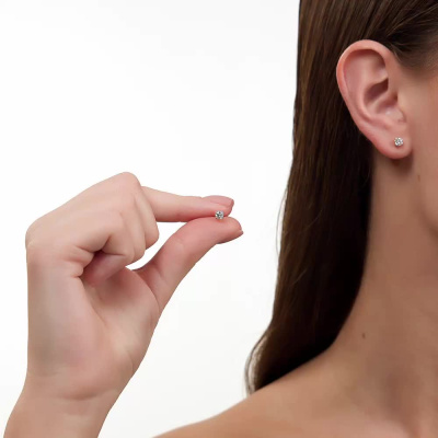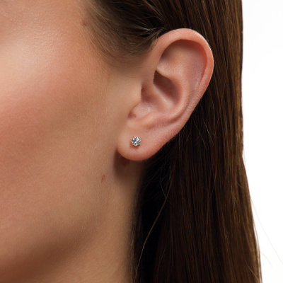 Серьги с 2 бриллиантами выращенными, 0.41 карат, огранка круг 57 граней, цвет 3, чистота 6, тип огранки А; Розовое золото 585 пробы.
