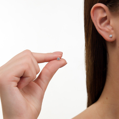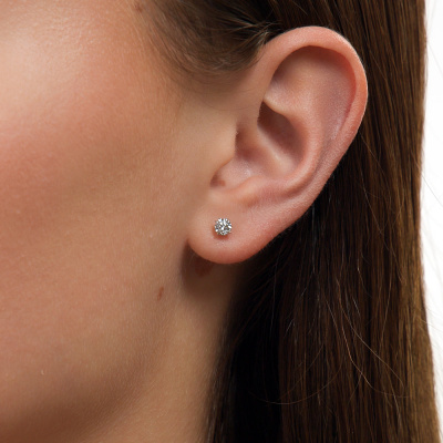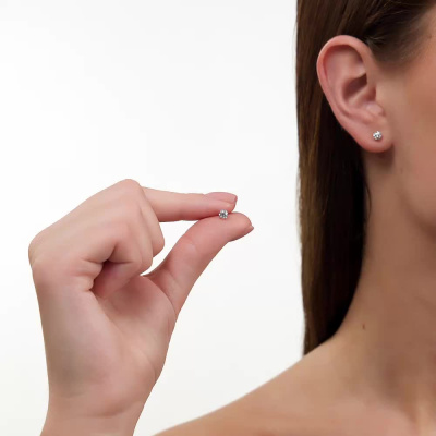 Серьги с 2 бриллиантами выращенными, 0.46 карат, огранка круг 57 граней, цвет 3, чистота 6, тип огранки А; Белое золото 585 пробы.