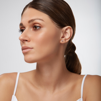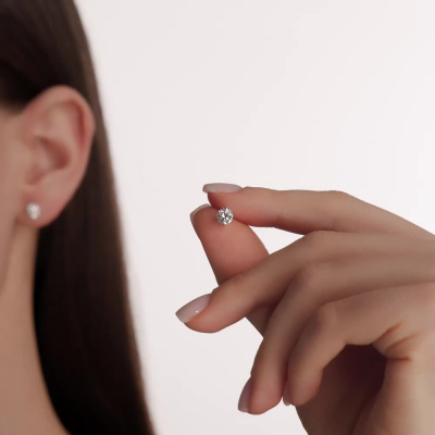Серьги с 2 бриллиантами выращенными, 1.04 карат, огранка круг 57 граней, цвет 4, чистота 6, тип огранки А; Белое золото 585 пробы.