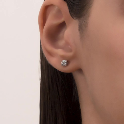 Серьги с 2 бриллиантами выращенными, 0.65 карат, огранка круг 57 граней, цвет 4, чистота 6, тип огранки А; Белое золото 585 пробы.